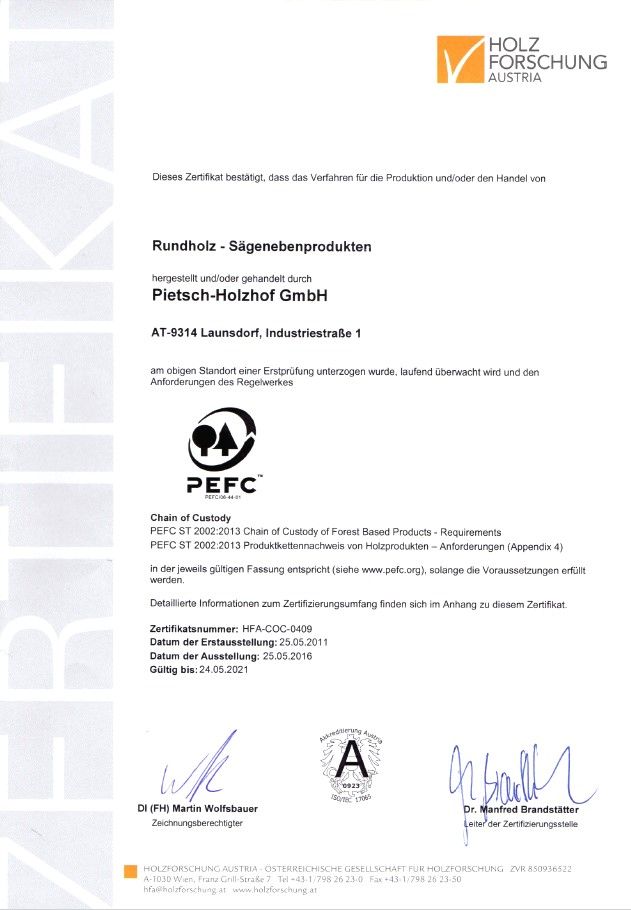 Unser Holz stammt aus nachhaltig bewirtschafteten Wäldern. Wir sind nach den PEFC Richtlinien zertifiziert: