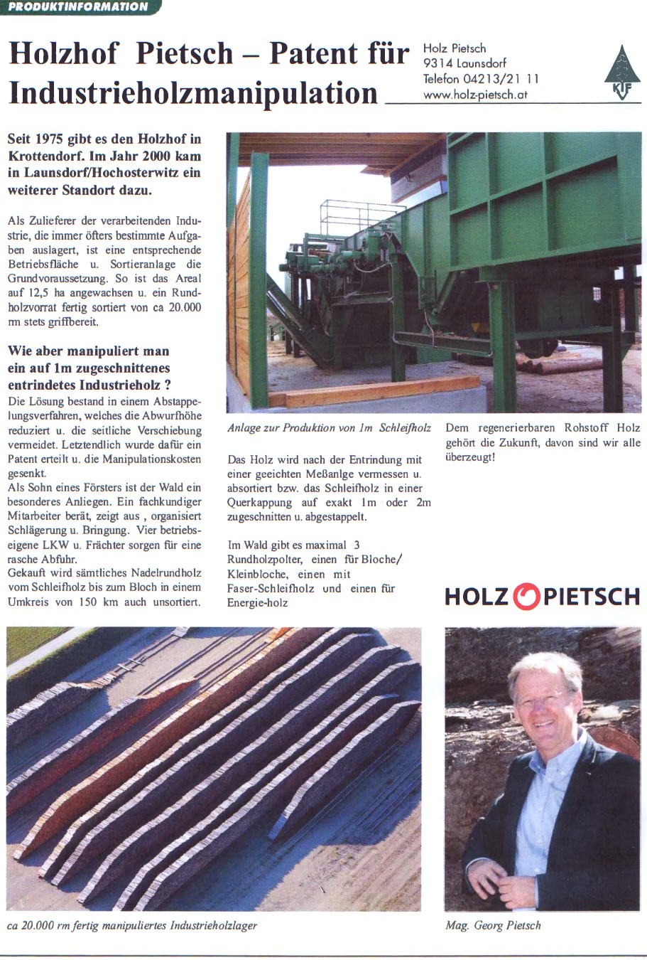 Holzhof Pietsch - Patent für Industrieholzmanipulation
